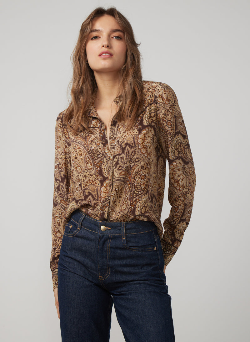 Gilner Farrar Florence Blouse in Khaki Paisley