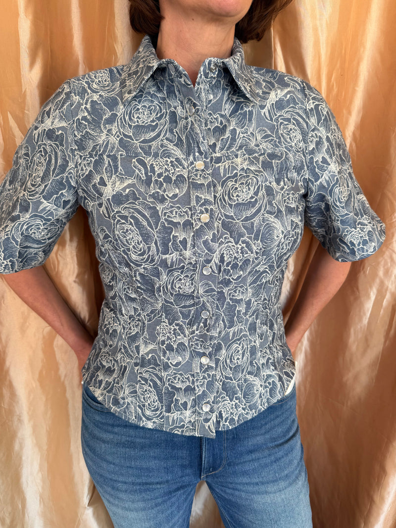 GILNER FARRAR Carine Blouse in Denim Jacquard